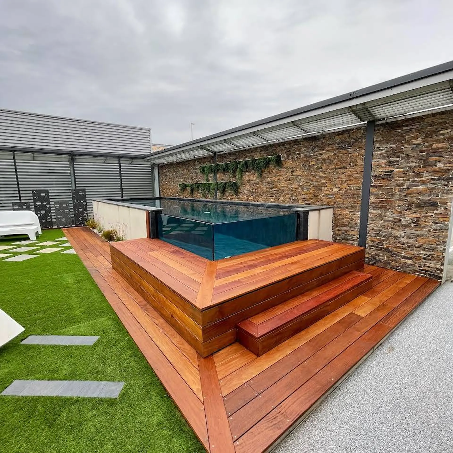 Avec une terrasse en bois exotique, vous aurez l'impression que votre maison ne fait qu'un avec la nature. Le bois est un matériau merveilleux - il apporte chaleur et authenticité à n'importe quel endroit. Vous pouvez installer une terrasse en bois presque partout : sur votre terrasse, sur le bord de votre piscine, sous votre pergola. Notre équipe vous aidera à choisir le type de bois qui vous convient le mieux et les dimensions qui conviennent le mieux à votre maison. Nous vous donnerons toutes les possibilités qui s'offrent à vous pour que votre rêve devienne réalité !
