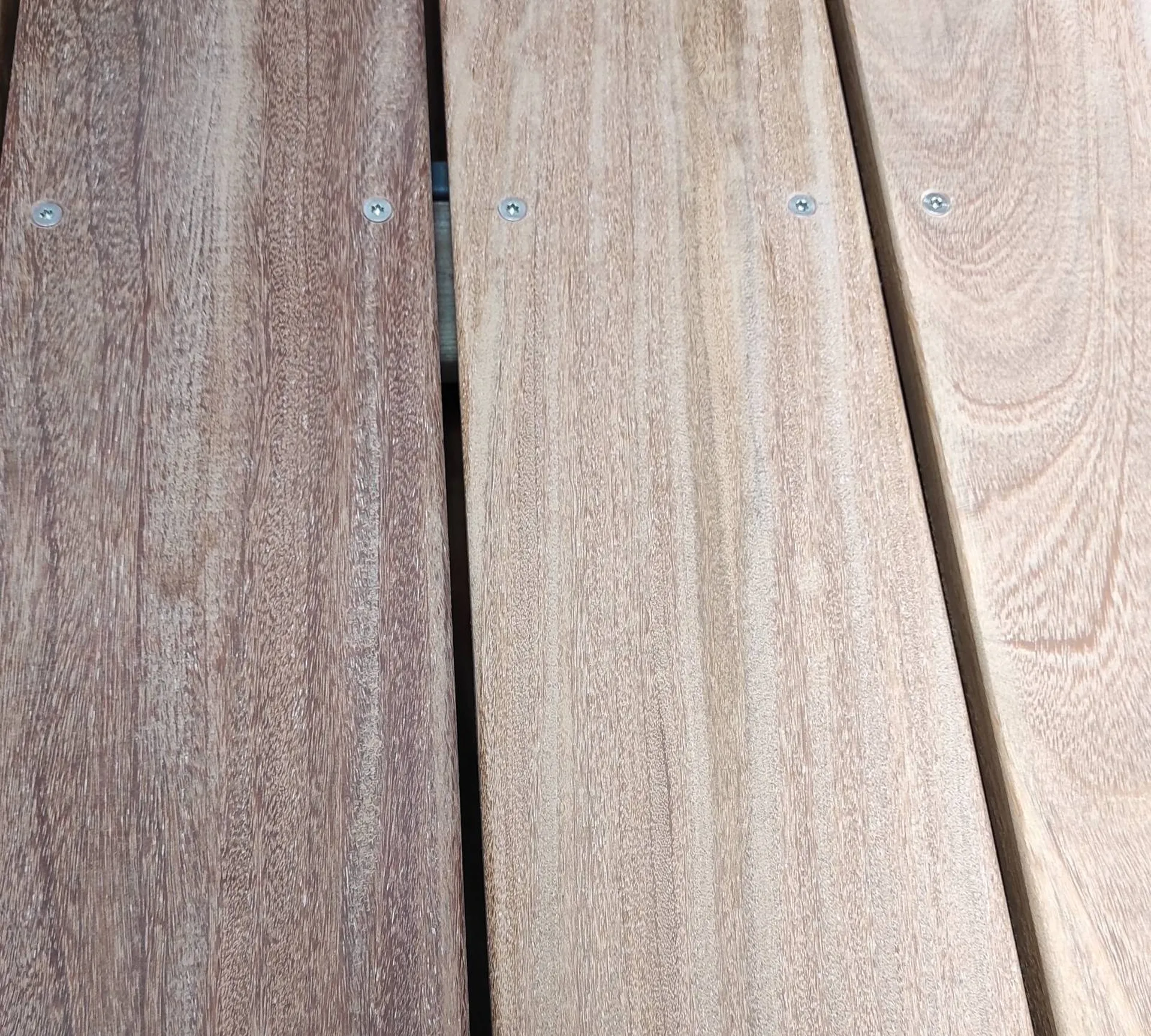 Le bois CUMARU présente une grande variation de couleur. Il va naturellement griser comme tous les autres bois ; il est donc conseillé de passer un saturateur une fois par an.
