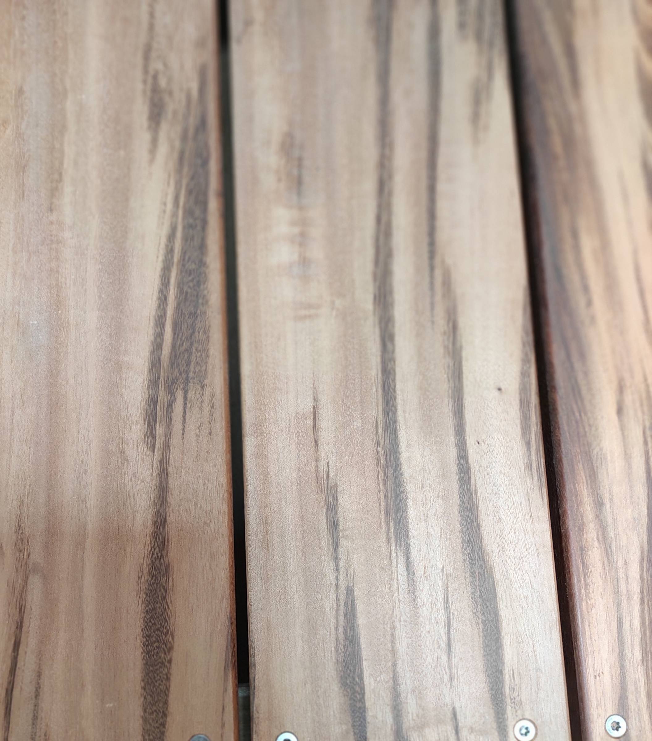 Ce bois de qualité exceptionnel plait beaucoup pour sa couleur originale qui évolue vers un beau brun rougeâtre qui confèrera à votre terrasse un style unique. Pour conserver sa jolie couleur, il est conseillé de passer un saturateur une fois par an.