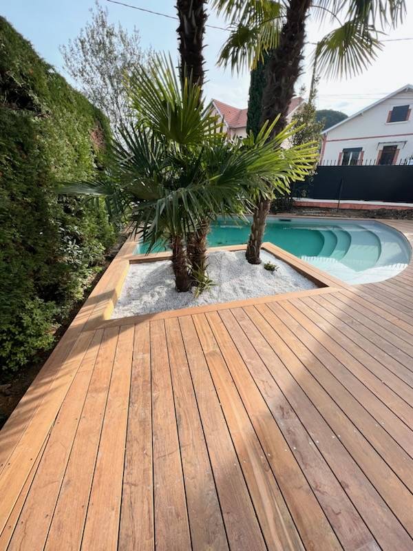 Notre équipe est intervenue au mois d'avril pour faire le tour d'une piscine pour un aménagement de terrasse en IPE.
